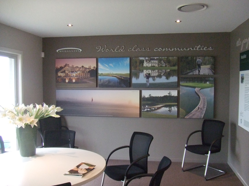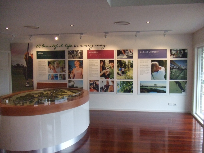 Sales office signage fit-out for Mirvac Residential in collaboration with Diva Works. Including custom lightboxes, fabricated aluminium bulk head, vinyl work, frosting, aluminium & acrylic 3D displays & statutory signage